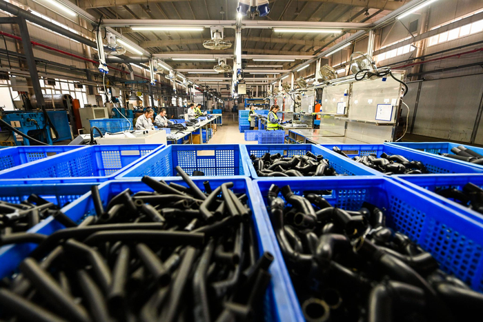 鹏翎集团的成长,是中塘镇培育以汽车胶管为代表的汽车零部件产业发展的缩影。“从汽车车门、玻璃、内饰,到底盘、刹车片、弹簧等,镇里产业链囊括了多数汽车零配件制造。”中塘镇党委书记闫宁介绍,该镇拥有规模以上汽车零部件企业15家,预计2025年总体产值超过40亿元。